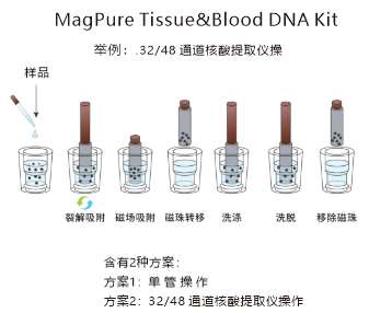 | MagPure Tissue&Blood DNA LQ Kit 为干血片、拭子、抗凝血液、血清、血浆、唾液、 培养细胞、少量的动物组织和石蜡切片等生物样品 DNA 提取提供了一个简单快速的解 决方案。试剂盒基于超顺磁性的磁性粒子纯化技术,提取过程中无需使用有毒的酚氯 仿抽提,也无需进行耗时的醇类沉淀,整个提取过程只需 60 分钟。该方法纯化的 DNA 包括基因组 DNA,线粒体 DNA,病毒 DNA(如乙肝),或其它寄生微生物的 DNA。得 到的 DNA 可直接用于 PCR,芯片分析、二代测序、病毒 DNA 检测等实验。 |