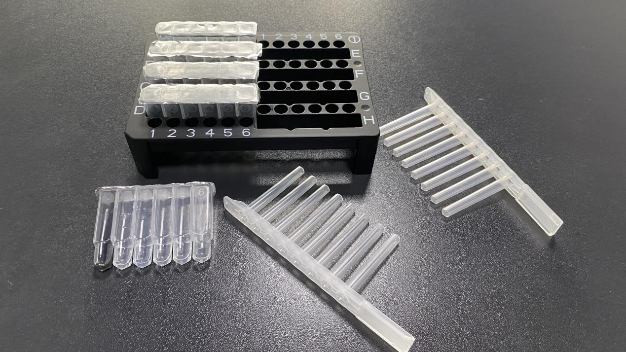 | 利用实验舱磁棒架上的磁棒,将吸附有核酸的磁珠移动至不同的试剂孔内,再利用套在磁棒外层的磁棒套,反复地快速拍打液体,使液体与磁珠均匀的混和,经过核酸裂解释放、核酸与磁珠吸附、杂质清洗与洗脱等过程,最终得到高纯度核酸。 | |
