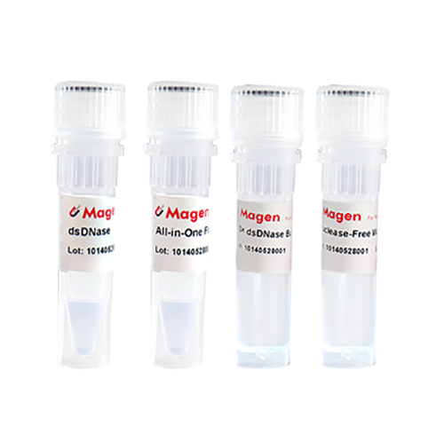 All-in-One First-Strand SuperMix (with dsDNase) 是一款高效、便捷、减少污染的高质量一链cDNA合成试剂盒,包含M-MLV GIII Reverse Transcriptase及其反应Buffer、RNA酶抑制剂、dNTPs、Oligo(dT)₂₀VN和随机引物等一链cDNA合成所需的所有组分,仅需加入RNA模板和水即可开始反应。使用该逆转录试剂盒获得的cDNA,下游可用于qPCR、普通PCR等实验。 RNA中存在基因组DNA污染,如果反转录前不做去除处理,下游进行qPCR反应时基因组DNA与cDNA会同时进行扩增,尤其是引物设计在同一外显子上时。本试剂盒采用dsDNase高效去除基因组DNA污染,区别于常规的DNase I,dsDNase能够特异性的消化双链DNA(dsDNA以及DNA与RNA的杂合链),并且具有热敏感性,可在高温条件下快速不可逆地失活。与传统使用DNase I去除基因组DNA污染的方法相比,dsDNase无需额外加入EDTA进行失活,不仅节省实验时间,而且降低了对逆转录反应的抑制。本产品作为升级后的一链cDNA合成试剂盒,15分钟内最长可获得12 kb cDNA。 可依据基因组污染严重程度选择采用去基因组DNA污染与反转录分开进行的操作方法,或者去基因组污染与反转录一步法进行的操作方法。 |